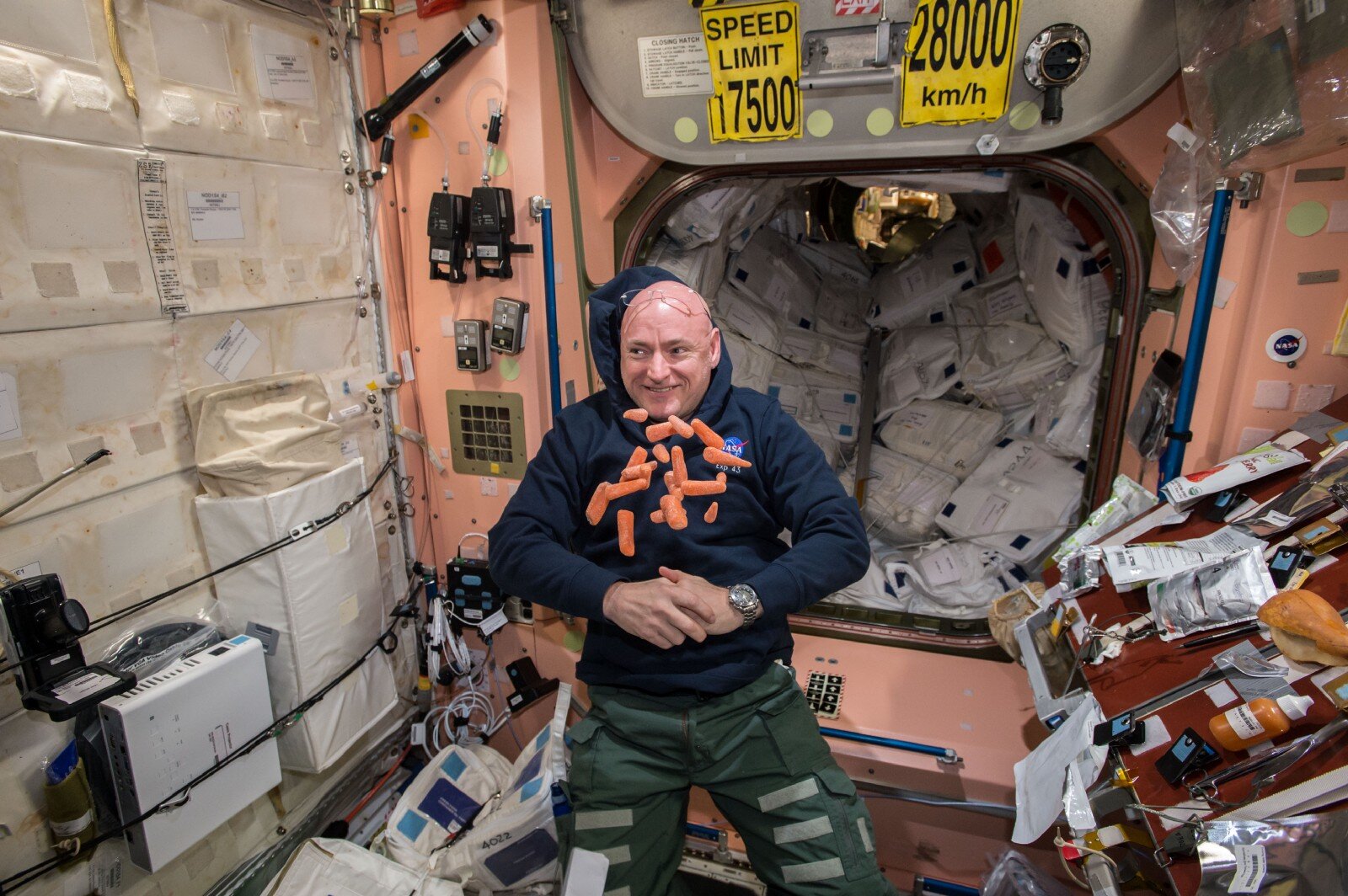 According to NASA’s report, Kelly’s telomeres — compound structures that protect the ends of chromosomes and decrease in length with age — significantly increased in average length (potentially due to his rigorous exercise regimen and restricted caloric intake), stating his post-flight measurements showed that his telomeres shortened in length within about 48 hours of landing, then stabilized to nearly preflight levels.